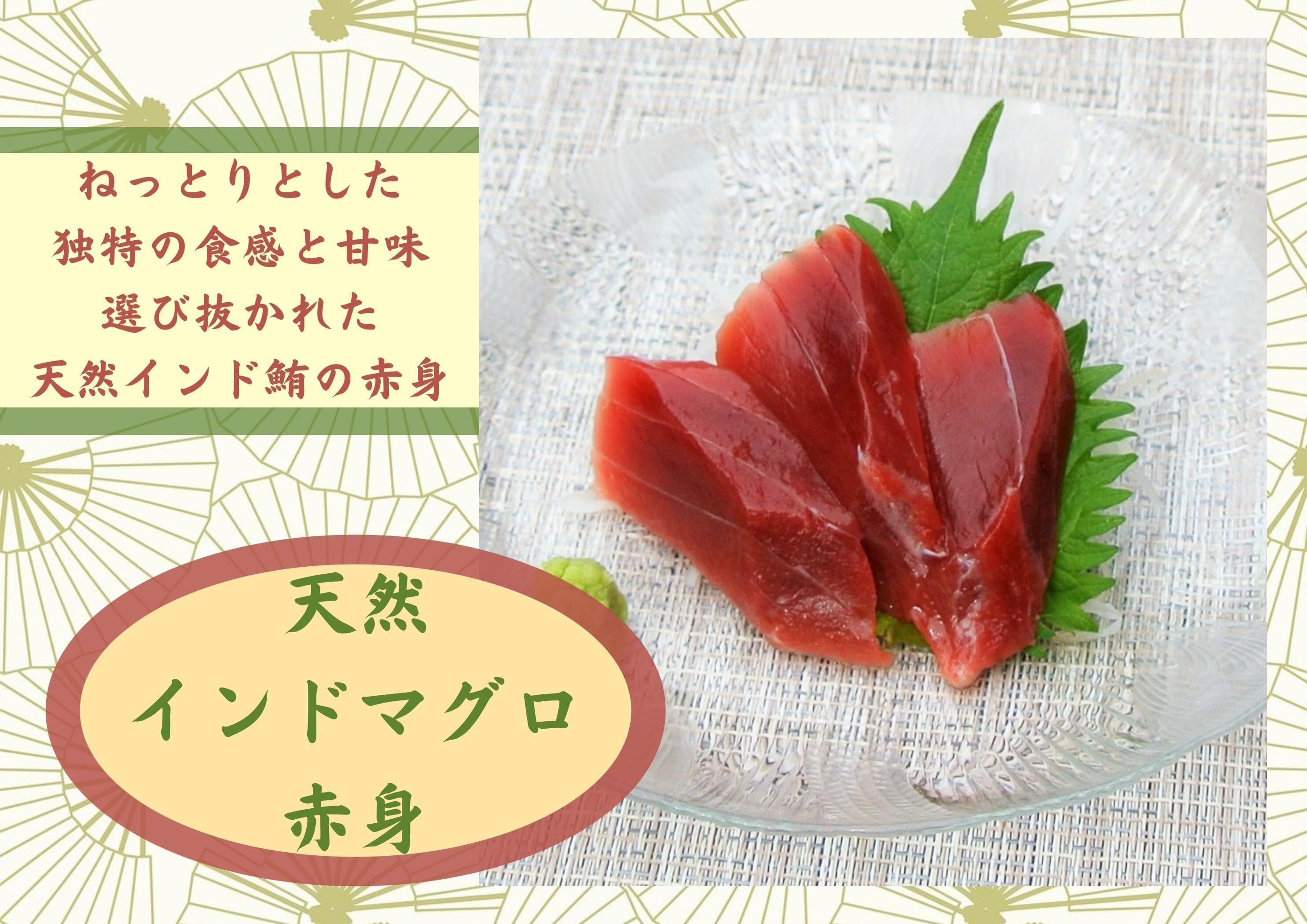 ●深いルビーレッドが一際目を引く天然インドマグロの赤身には、甘く、ねっとりとした独特の食感があります。